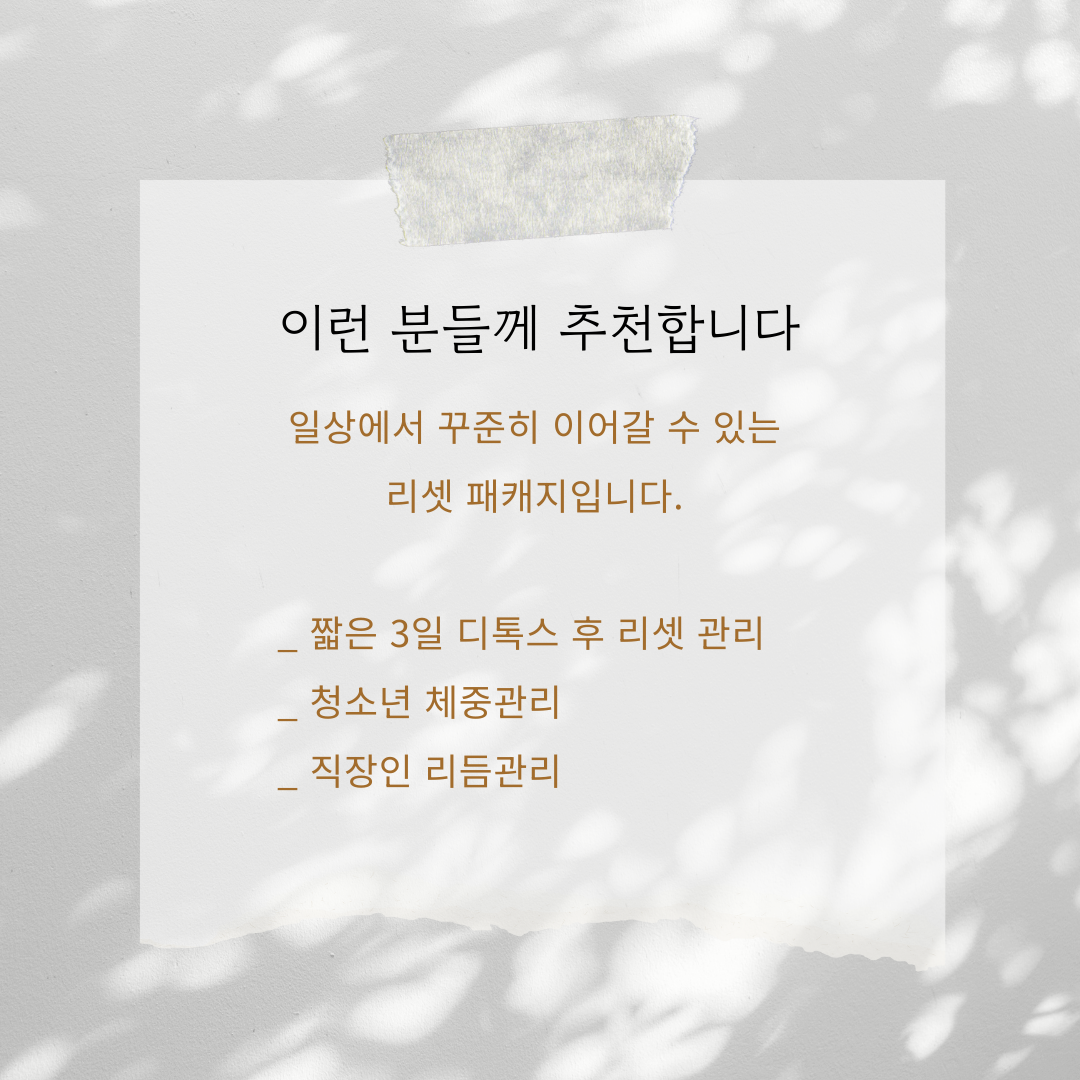 - 짧은 3일 디톡스 후 리셋 프로그램으로