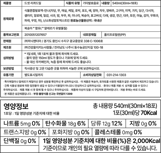 드셋 리퀴드밀 3데이즈 1box(3데이즈 1box = 18포)